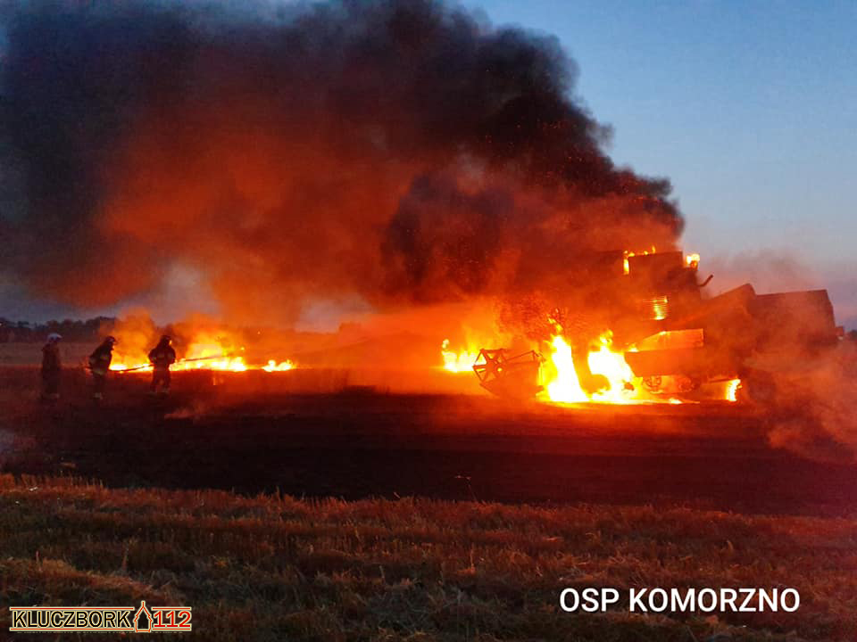 W sobotę 27 lipca około godziny 21 do Stanowiska Kierowania KP PSP w Kluczborku wpłynęło zgłoszenie o pożarze kombajnu oraz zboża na pniu w Komorznie.