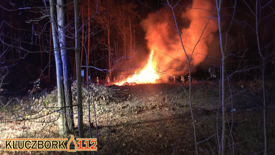 Po dojeździe na miejsce i rozpoznaniu stwierdzono pożar sterty gałęzi w lesie. Ze względu na możliwość rozprzestrzenienia się ognia na miejsce zadysponowano 4 zastępy z powiatu kluczborskiego oraz 3 z oleskiego.