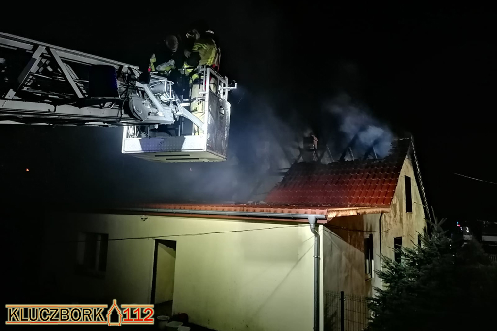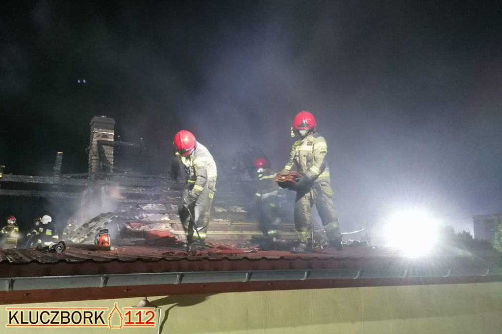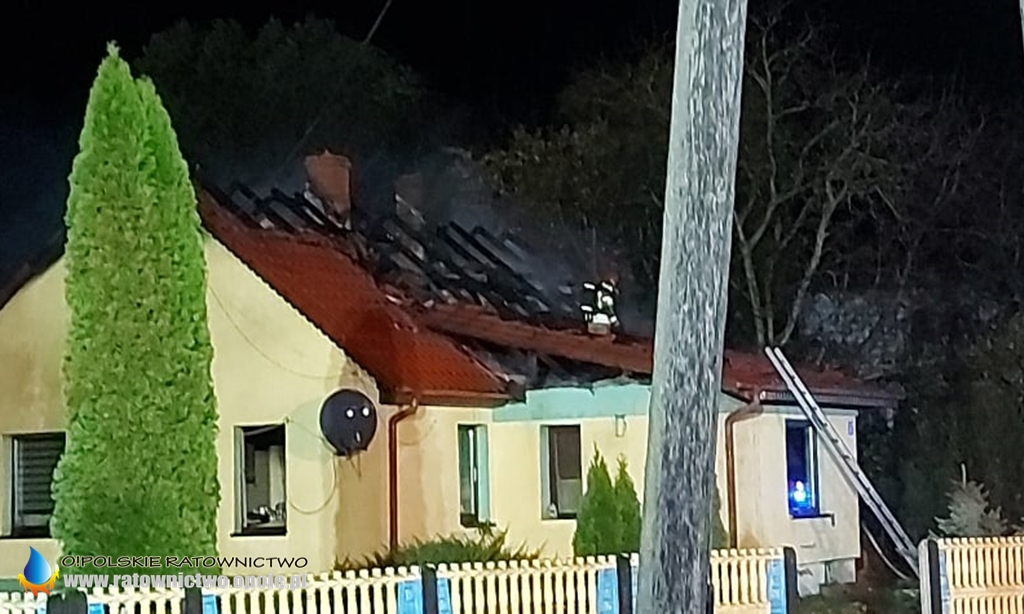 Po przybyciu na miejsce pierwszego zastępu kierujący działaniem ratowniczym potwierdził pożar dachu budynku mieszkalnego jednorodzinnego.