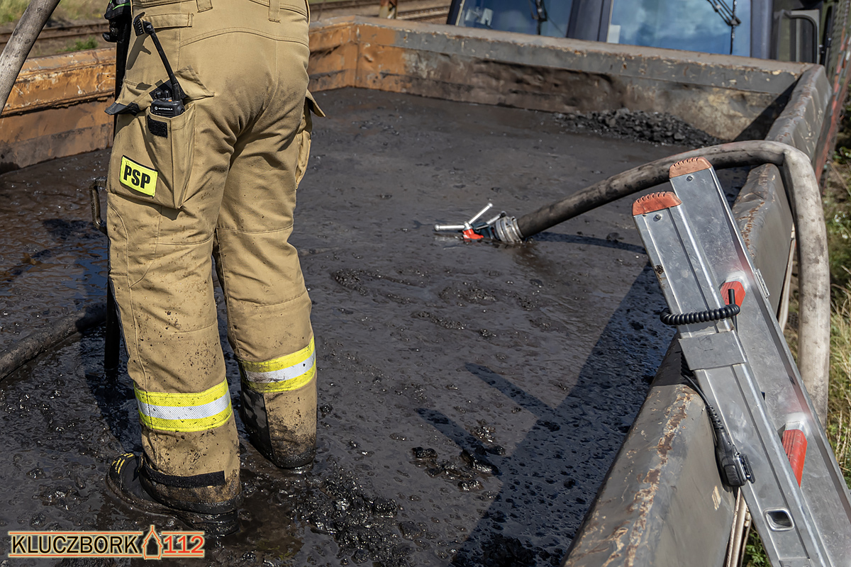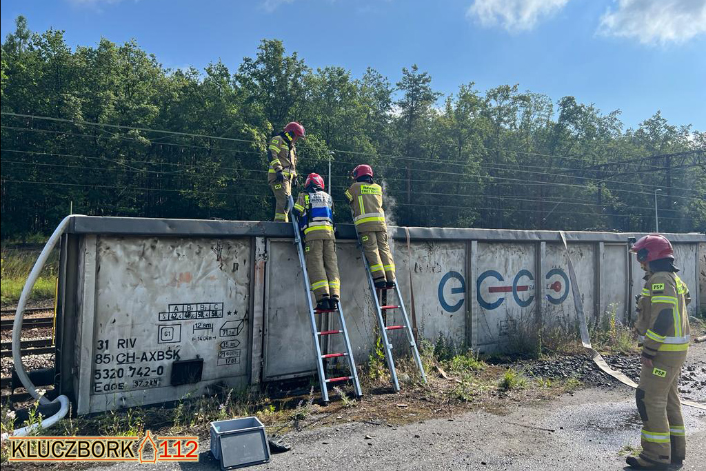 W czwartek 29 czerwca o godzinie 7:15 do Stanowiska Kierowania Komendanta Powiatowego PSP w Kluczborku wpłynęło o pożarze miału węglowego w dwóch wagonach pociągu towarowego na stacji w Bąkowie.