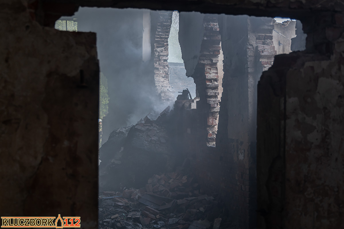 Po dojeździe na miejsce ustalono, że w pustostanie palą się sprasowane tworzywa sztuczne i śmieci, które spowodowały bardzo silne zadymienie. Dym widoczny był ze znacznej odległości.