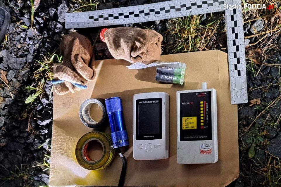 Podczas przeszukania śląscy kryminalni znaleźli te urządzenia oraz kilka tablic rejestracyjnych pochodzących ze skradzionych pojazdów. Wszystkie przedmioty będą teraz dowodami w sprawie.
