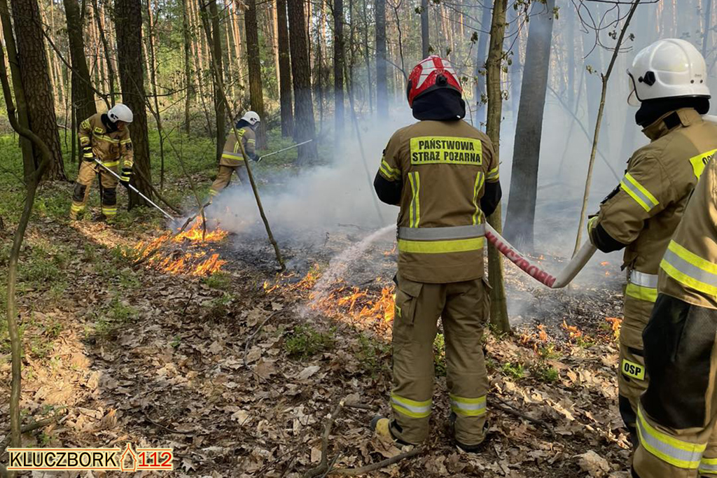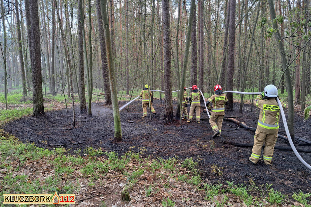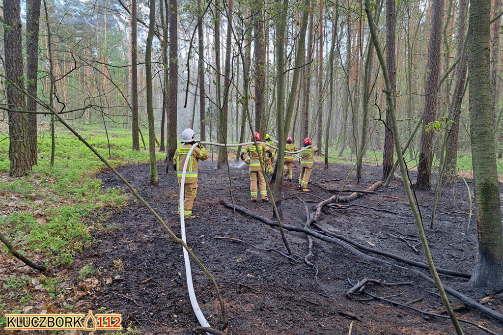 W sobotę 4 maja około godziny 17:15 do Stanowiska Kierowania Komendanta Powiatowego w Kluczborku wpłynęło zgłoszenie o pożarze ściółki leśnej w okolicy starej strzelnicy przy zbiorniku retencyjnym.