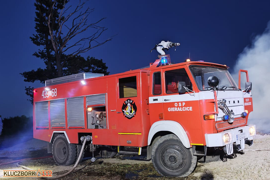 We wtorek, 11 sierpnia, około godziny 19:20 Stanowisko Kierowania Komendanta Powiatowego PSP w Kluczborku otrzymało zgłoszenie o pożarze przyczep rolniczych załadowanych słomą w miejscowości Gierałcice.