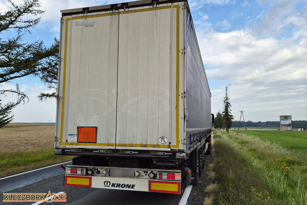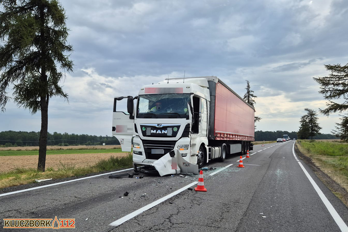 Kolizja dwóch ciężarówek na DK42 pod Wołczynem. Osobówka odjechała z miejsca zdarzenia