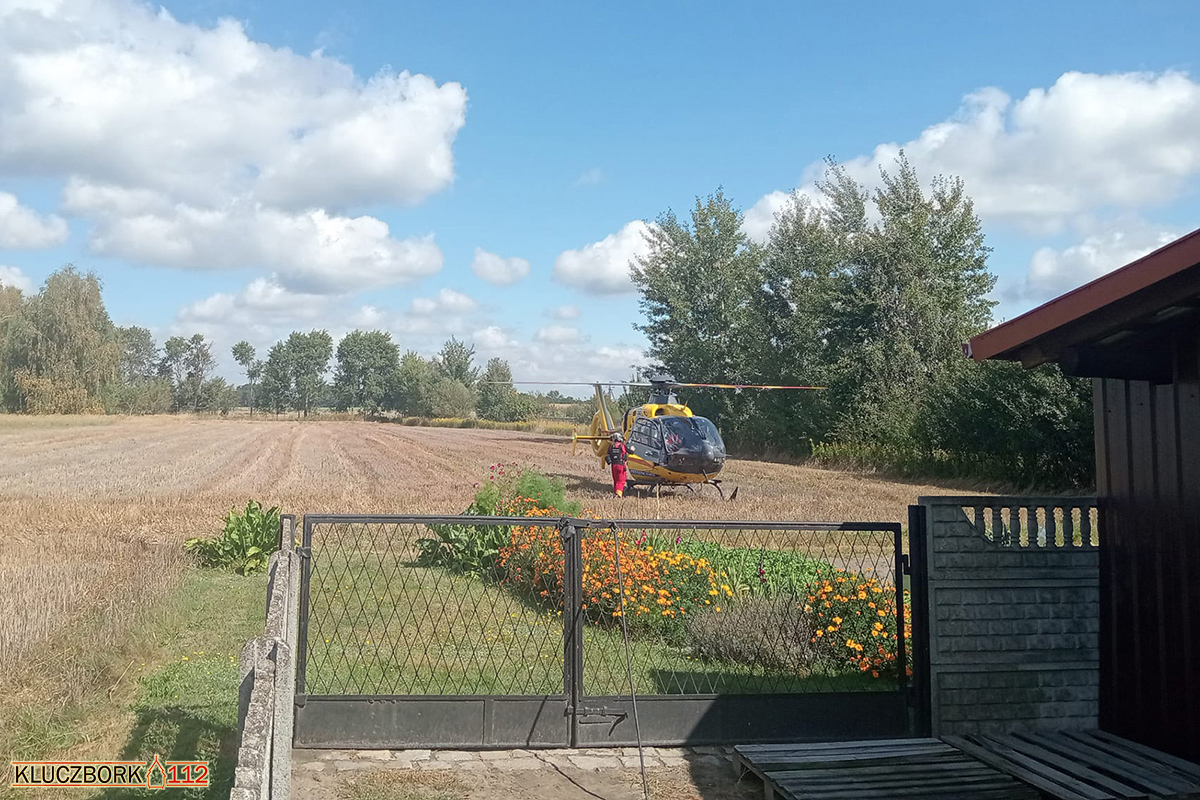 Po dojeździe strażacy udzielili poszkodowanemu starszemu mężczyźnie kwalifikowanej pierwszej pomocy, a następnie przygotowali i zabezpieczyli lądowisko dla śmigłowca. Nieprzytomny mężczyzna z poważnymi obrażeniami został przetransportowany przez załogę LPR do szpitala.