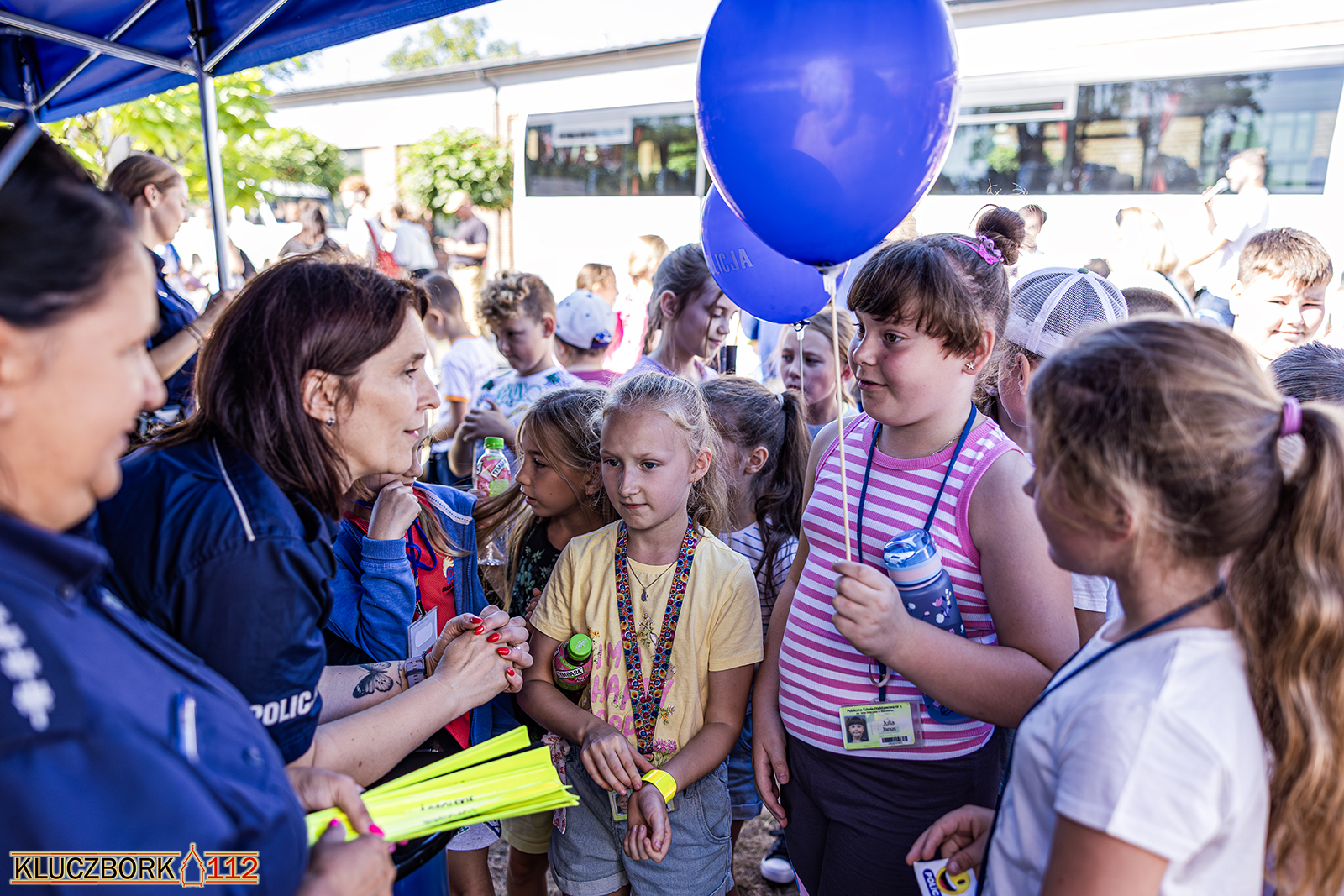 Swoje stanowisko przygotowali również policjanci, którzy rozdawali odblaskowe gadżety i chętnie opowiadali o zasadach bezpieczeństwa. Uczestnicy mieli okazję wsiąść do radiowozu, usiąść na policyjnym motocyklu, a najmłodsi z entuzjazmem przywitali się z policyjnym psem. Ogromną radość wzbudziła także obecność maskotki Policusia, z którą dzieci chętnie robiły sobie pamiątkowe zdjęcia.