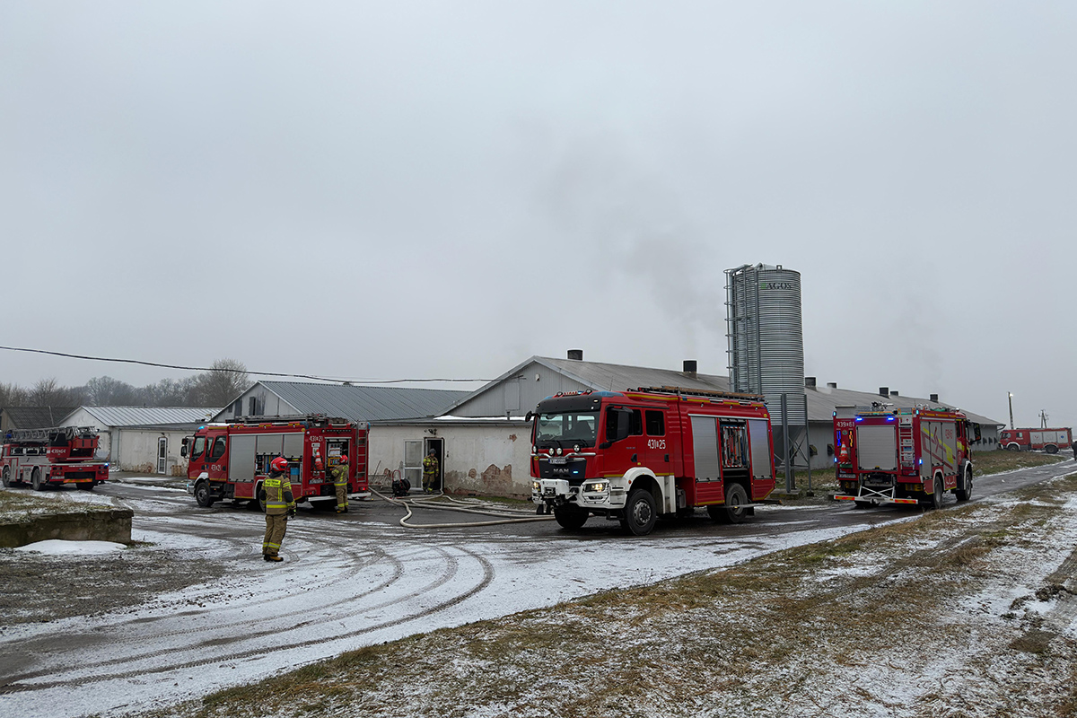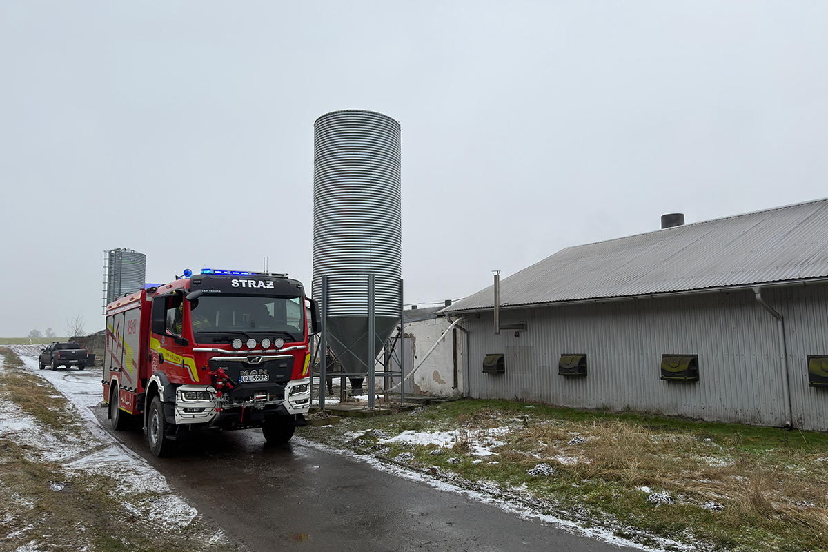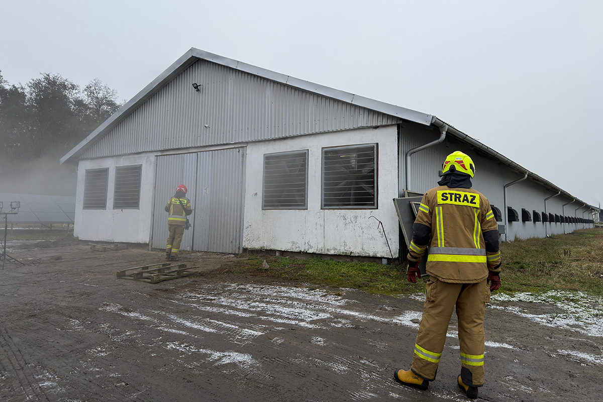 Po alarmowym przybyciu na miejsce zdarzenia strażacy przeprowadzili rozpoznanie, które wykazało, że doszło do zapalenia się ściółki ze słomy. Działania ratowniczo-gaśnicze pozwoliły szybko opanować sytuację i zapobiec rozprzestrzenieniu się ognia na pozostałą część obiektu.