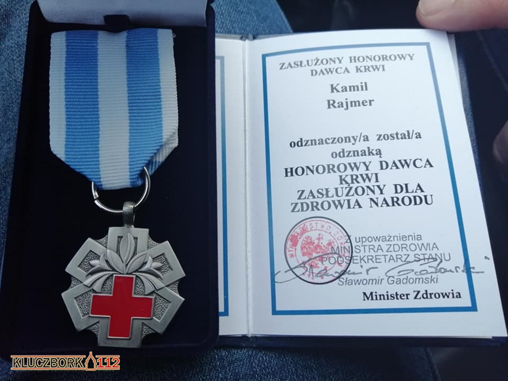 Kamil Rajmer strażak z Ochotniczej Straży Pożarnej w Wołczynie otrzymał odznakę „Honorowy Dawca Krwi – Zasłużony dla Zdrowia Narodu”. To najwyższe odznaczenie dla krwiodawcy.