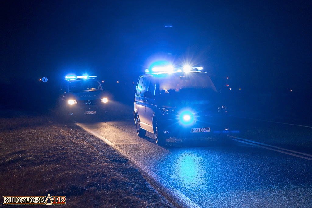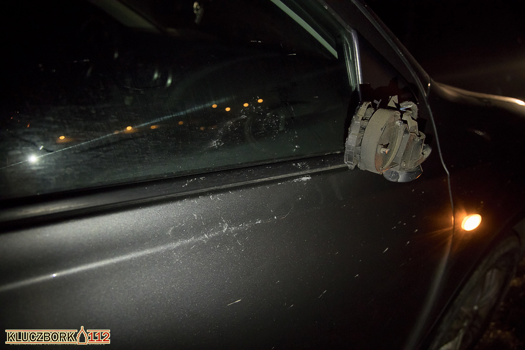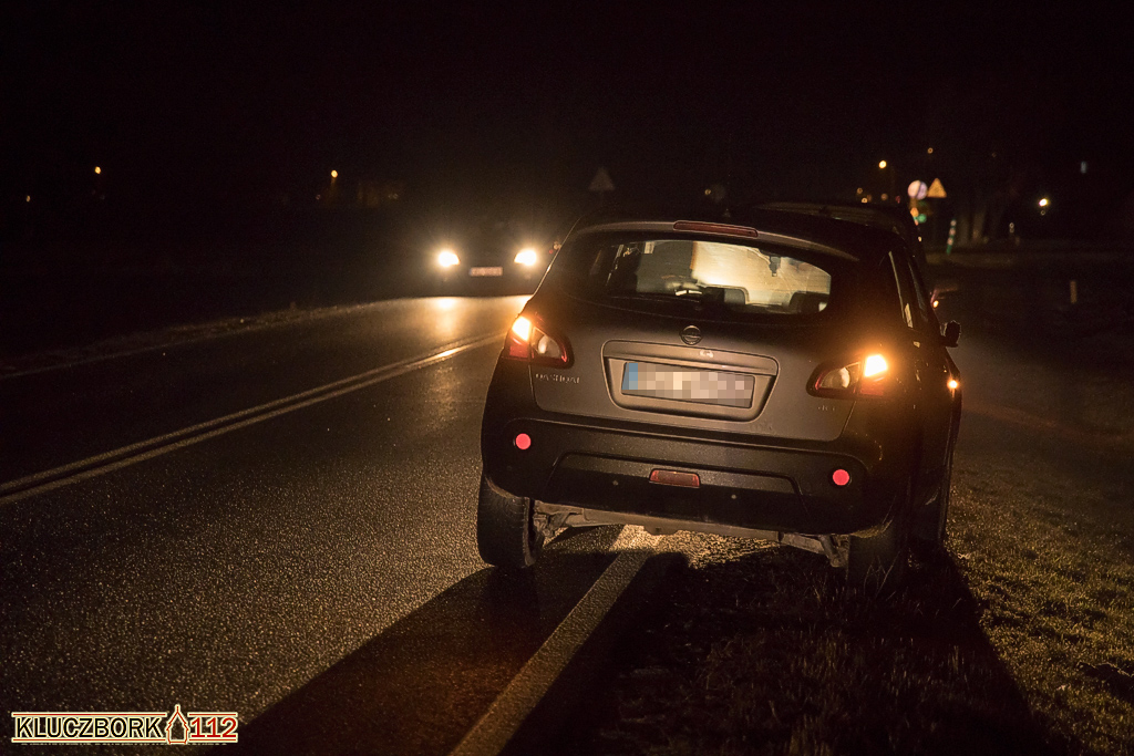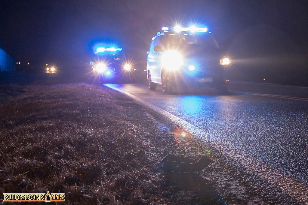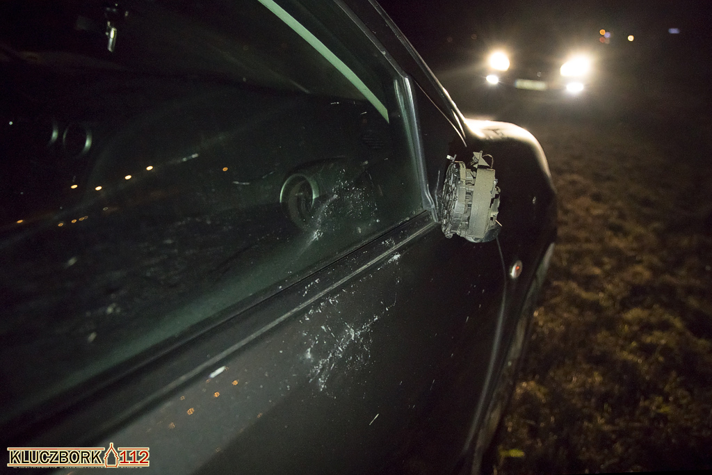 Kierujący Nissanem Qashqai jadąc od strony Kluczborka w kierunku Kępna uderzył prawym lusterkiem pieszego idącego drogą. Kierujący zeznał, że z naprzeciwka jechało auto i nie widział mężczyzny.