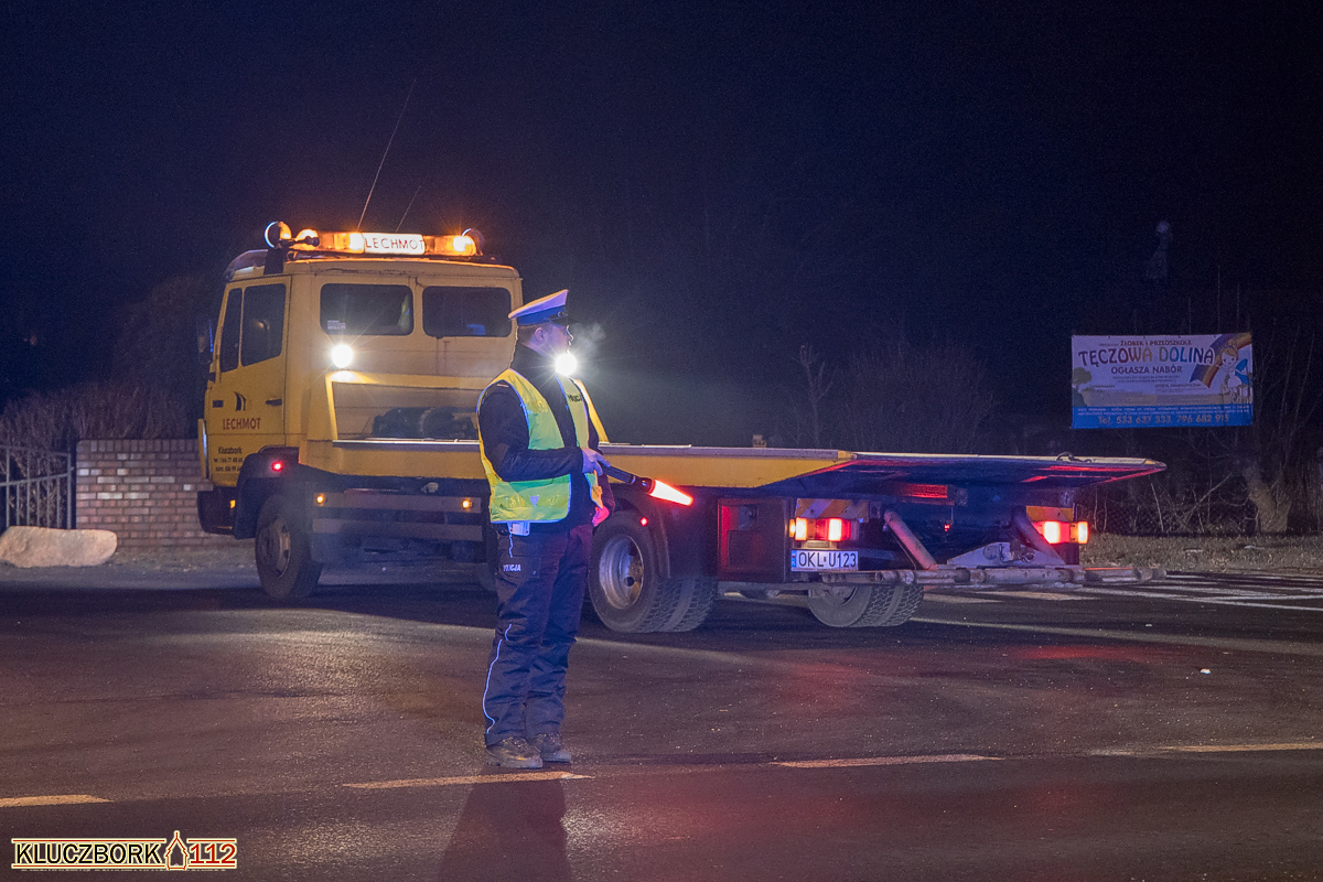W piątek 24 stycznia około godziny 21:30 do dyżurnego kluczborskiej straży pożarnej wpłynęło zgłoszenie wypadku drogowym z udziałem jednego pojazdu na skrzyżowaniu ulicy Wołczyńskiej, Robotniczej oraz Młyńskiej.