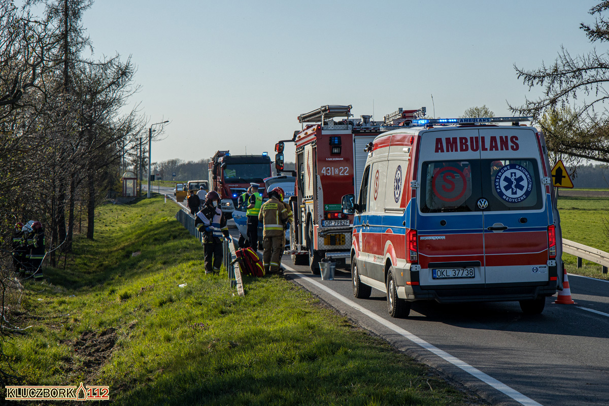 W sobotę 18 kwietnia o godzinie 17:20 do kluczborskich służb ratunkowych wpłynęło zgłoszenie o wypadku drogowym na DK42 w pobliżu miejscowości Czaple Wolne.