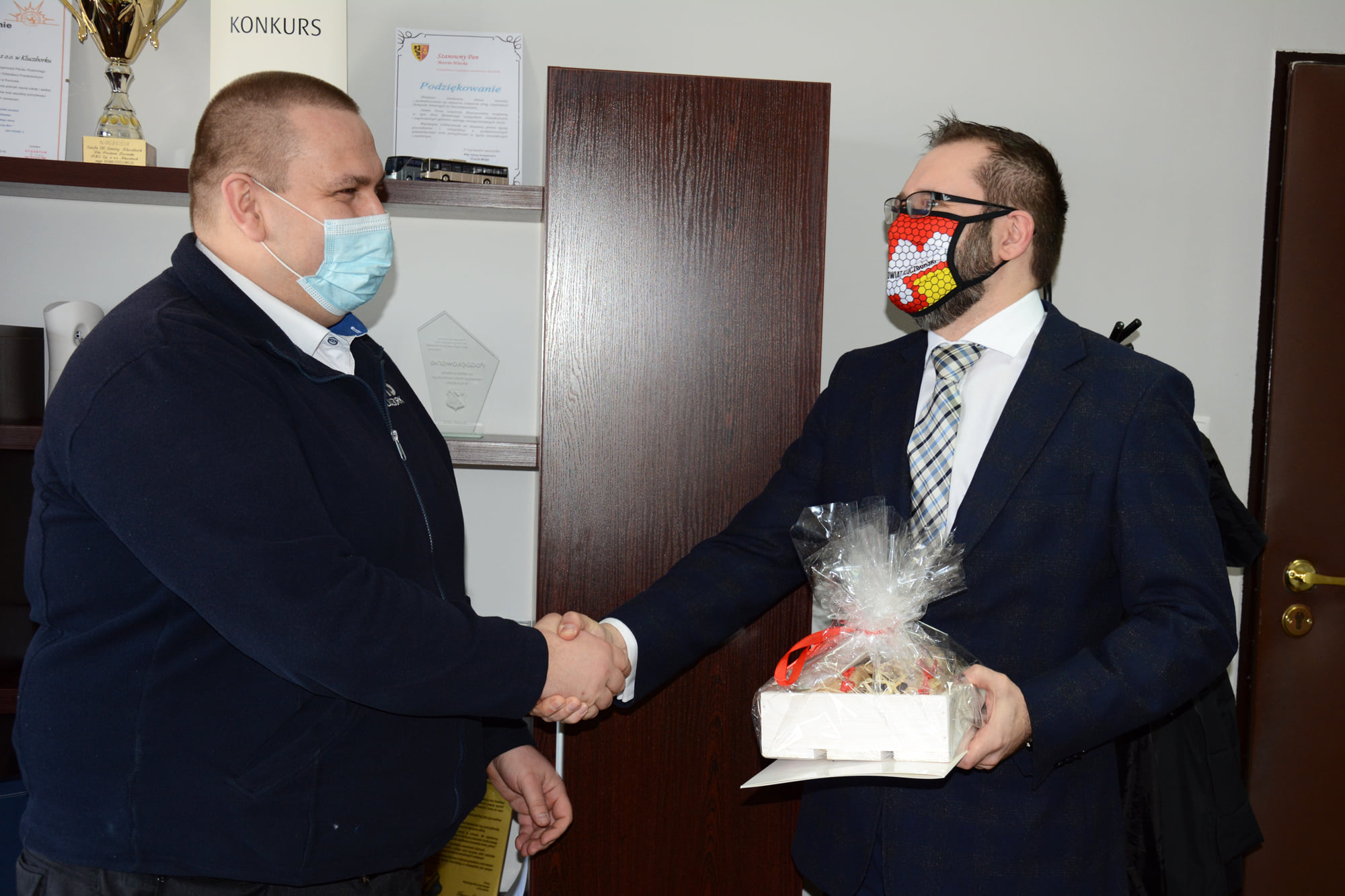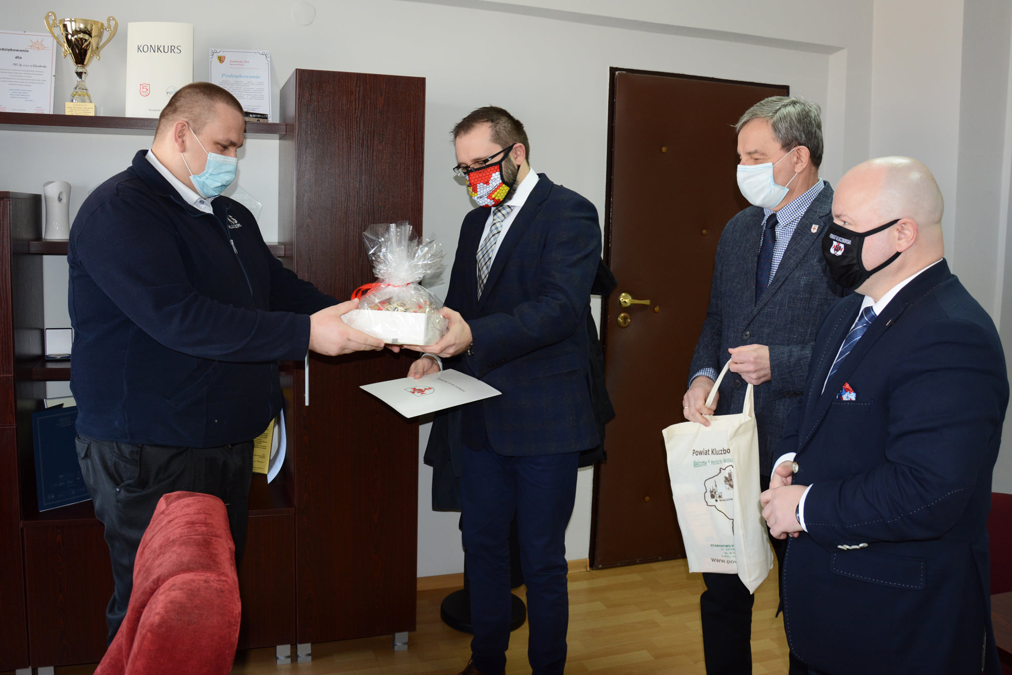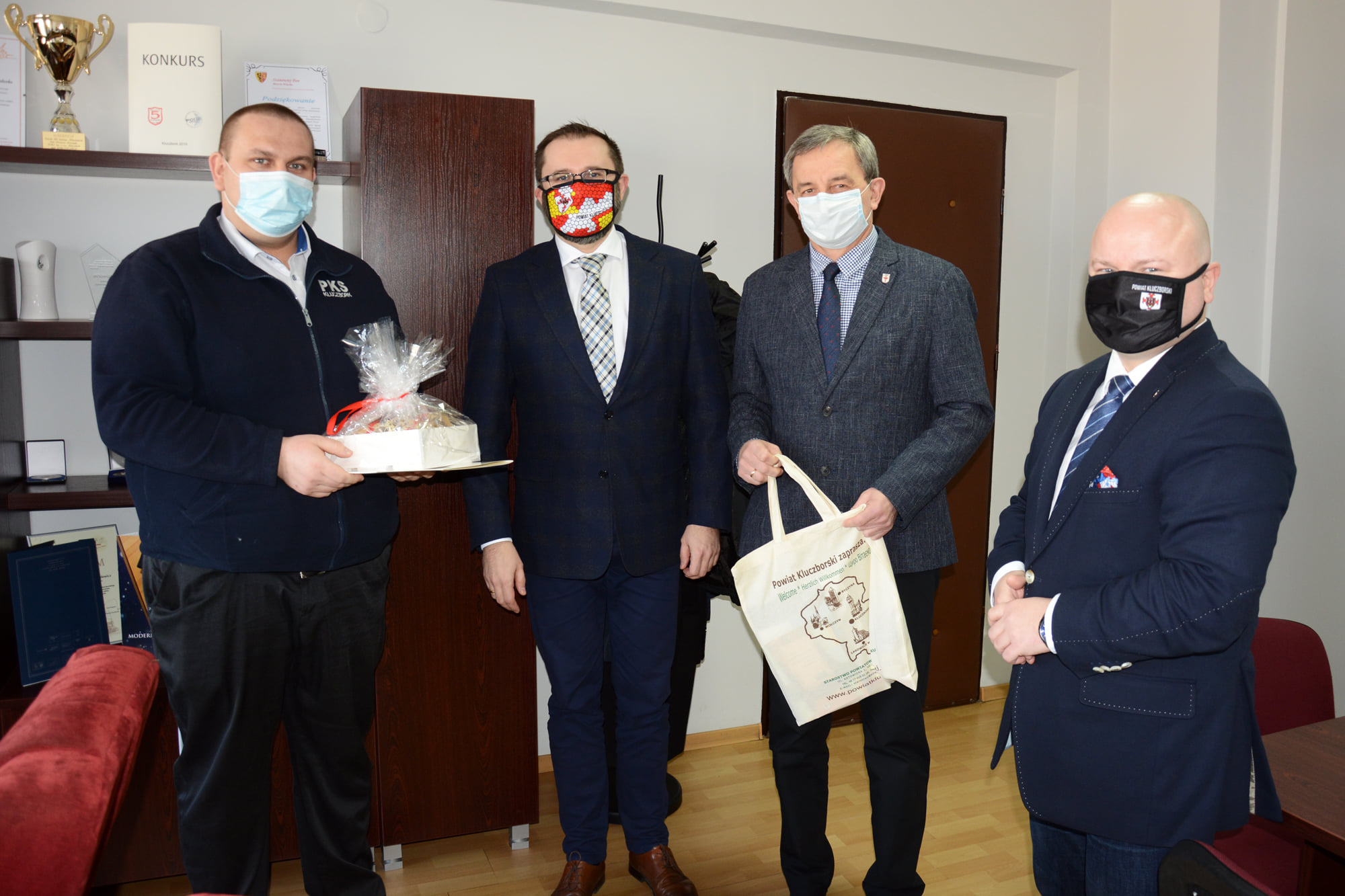 Starosta Kluczborski Mirosław Birecki, Wicestarosta Lesław Czernik i członek Zarządu Powiatu Artur Nowak podziękowali dzisiaj kierowcy PKS Kluczbork Przemysławowi Zalcmanowi, który 17 marca udzielił pomocy osobom poszkodowanych w wypadku drogowym w Krzywiźnie.