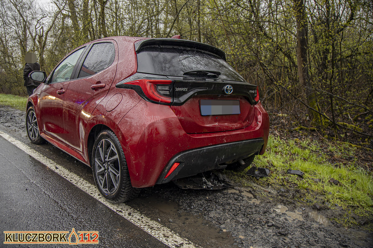 Kierujący fiatem jadąc od strony Wierzbicy w kierunku Wołczyna zamierzał skręcić w boczną drogę. Jadący za nim kierujący Toyotą Yaris zatrzymał się, natomiast kierowca VW Caddy nie zdążył zahamować i uderzył w tył toyoty.