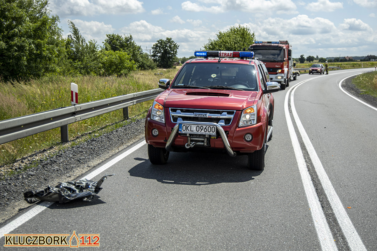 W środę 30 czerwca o godzinie 12:15 dyżurny Stanowiska Kierowania KP PSP w Kluczborku otrzymał zgłoszenie o wypadku na DK45 – obwodnicy Kuniowa.
