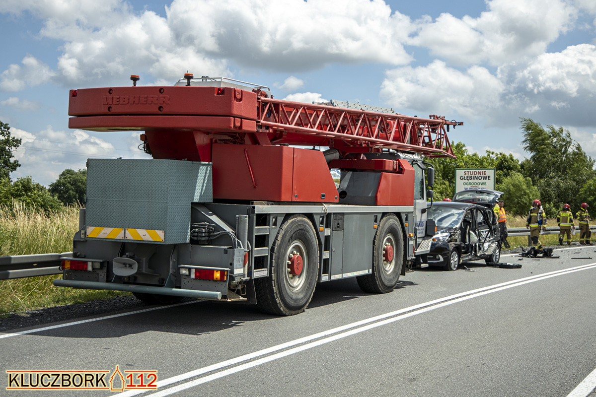 Doszło tam do zderzenia dźwigu z autem osobowym.