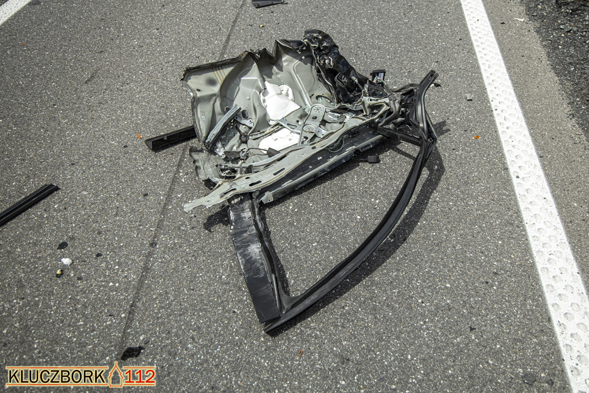 W wyniku tego w aucie osobowym zerwany został bok od strony kierowcy.