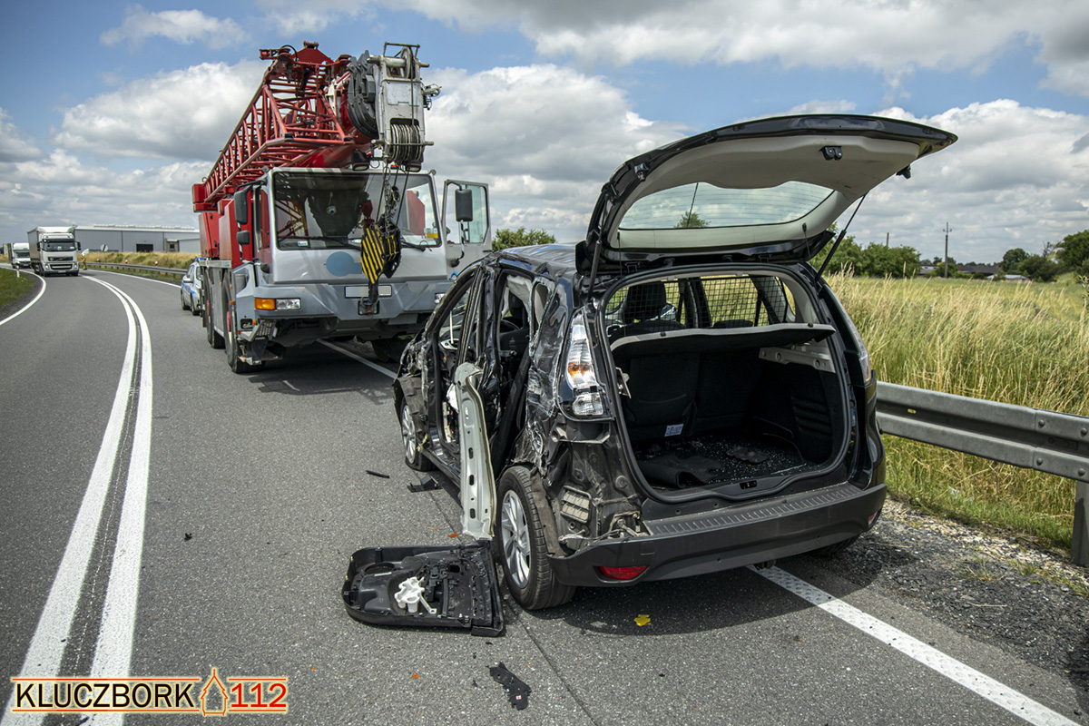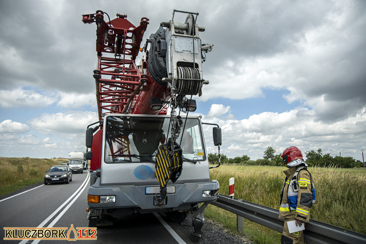 Kierujący dźwigiem jadąc od strony ronda w Kraskowie w kierunku Opola na łuku drogi złapał prawymi kołami pobocze. By nie wpaść do rowu odbił kierownicą w lewą stronę i uderzył bokiem w osobowe renault.