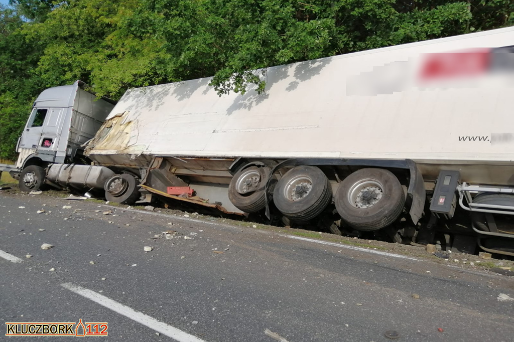 Ze wstępnych ustaleń wynika, że w samochodzie ciężarowym marki Scania doszło do wystrzału opony, po czym kierowca stracił panowanie nad pojazdem, zjechał na lewy pas, zderzając się z samochodem ciężarowym z naczepą. W wyniku zderzenia ciężarówka z naczepą zjechała do rowu.