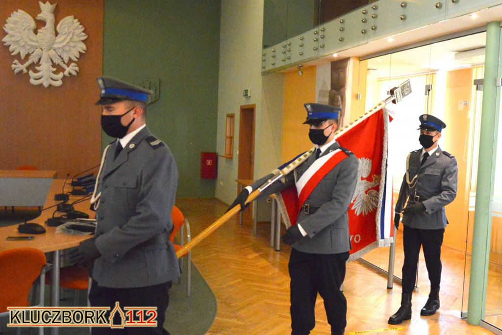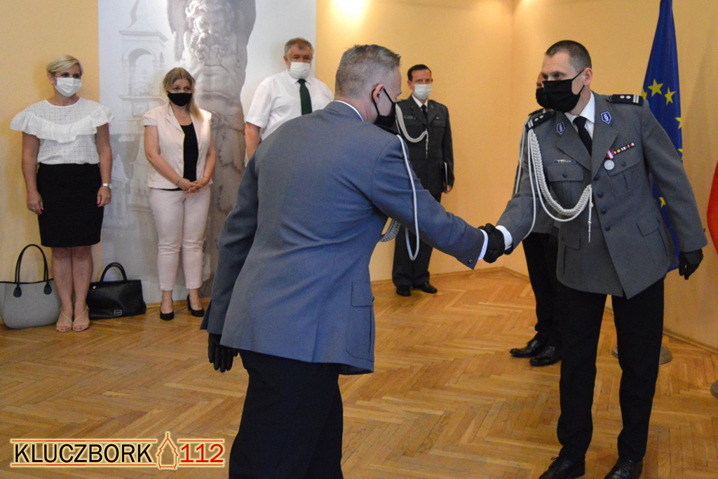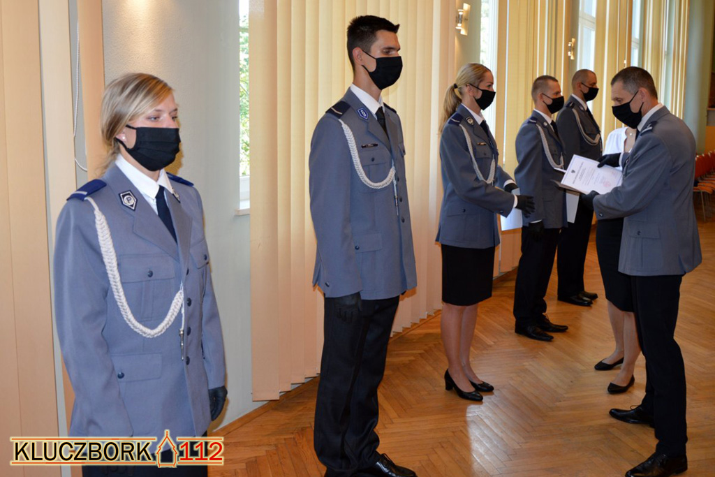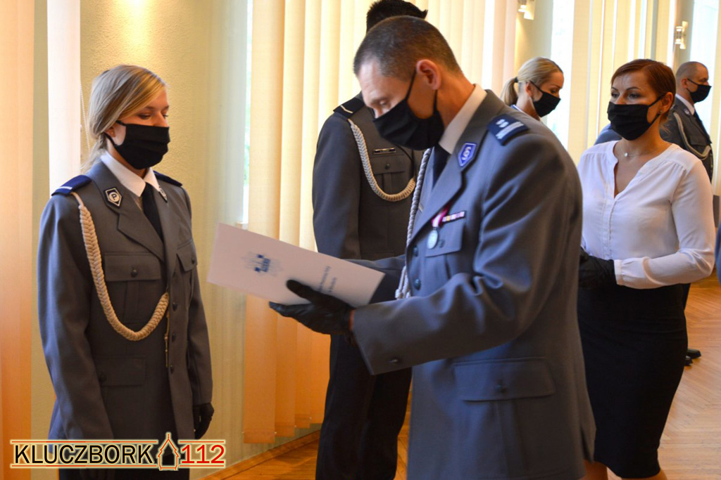 Niestety z uwagi z obostrzenia wynikające z zagrożenia epidemicznego, uroczystość przybrała skromniejszą formę i nie wszyscy funkcjonariusze i pracownicy kluczborskiej Policji mieli możliwość odebrania podczas zbiórki aktów mianowania oraz wyróżnień.